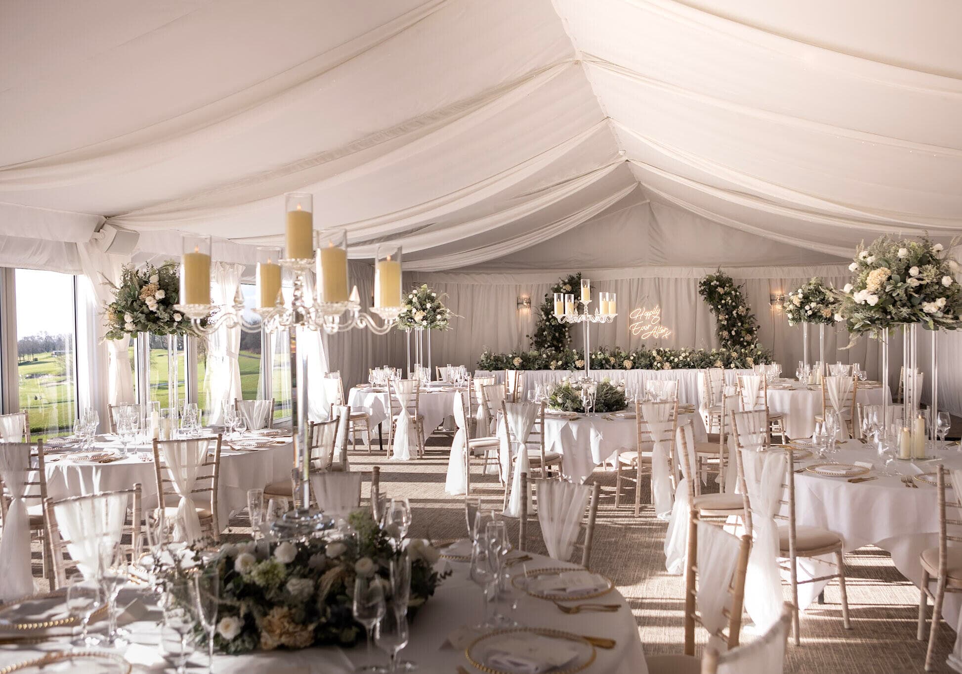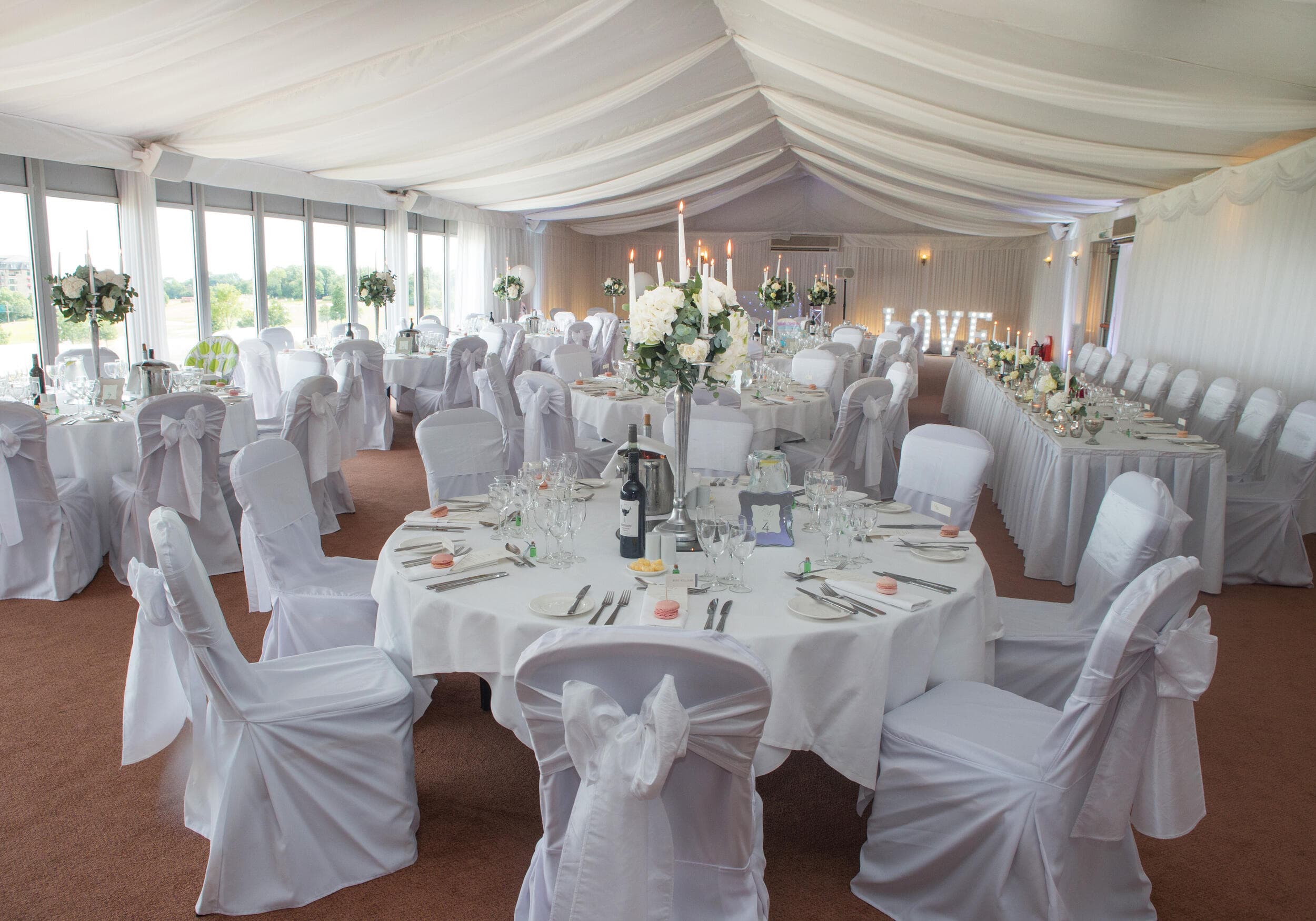 The Via Julia Suite and chairman’s Marquee is the perfect venue to transform with your own personal wedding style. Arrival drinks will be served from your private bar as we guide guests into the marquee for your gorgeous wedding breakfast. The outdoor patio offers the perfect place for guests to mingle, enjoy a tipple and take in views of the golf course.